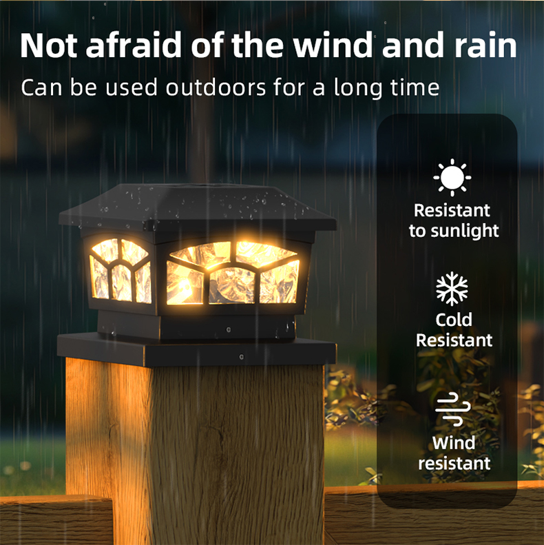 Toon scènes van onze 8 LED Solar Post Cap Light Outdoor waterdichte verlichting: